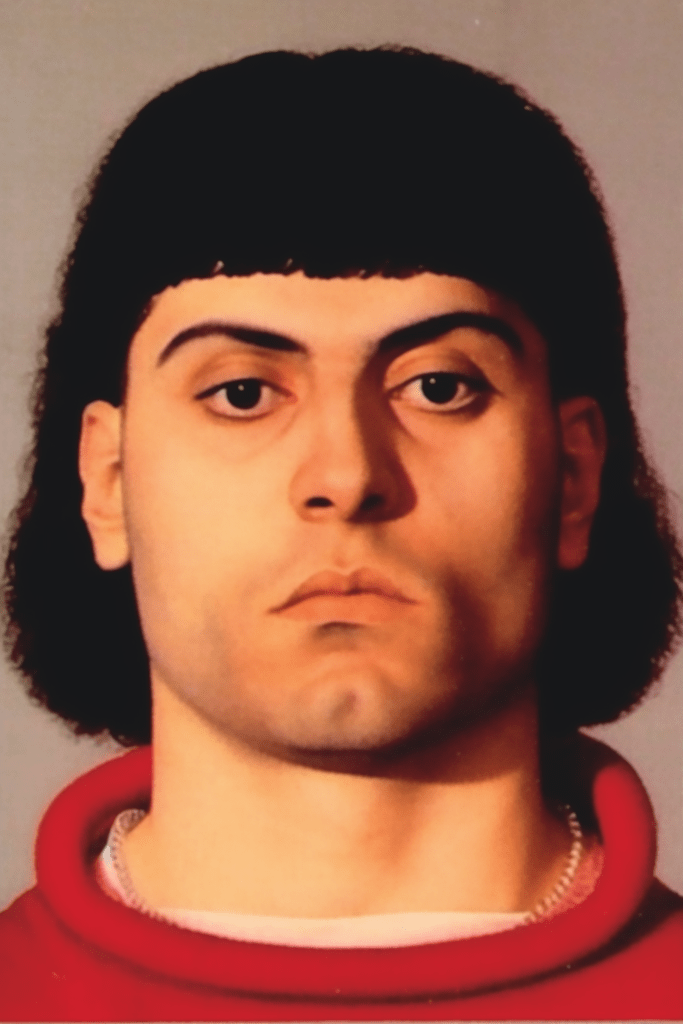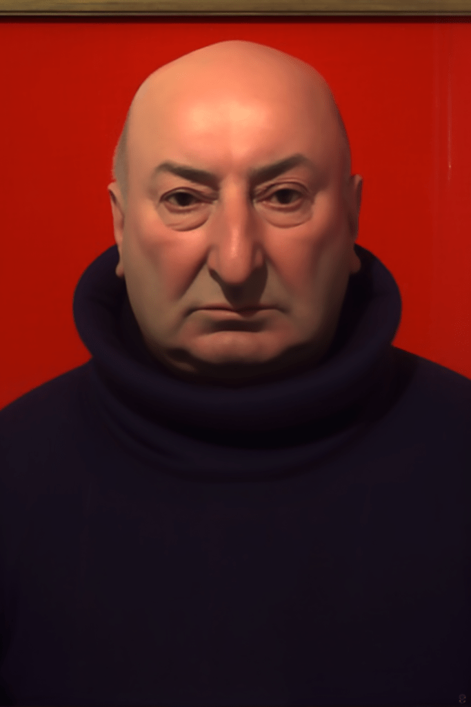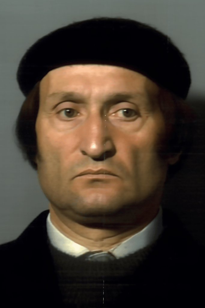 Ricostruzione digitale con Intelligenza Artificiale (AI). Ibrido tra foto di latitanti e pitture degli Ignoti di Antonello da Messina.