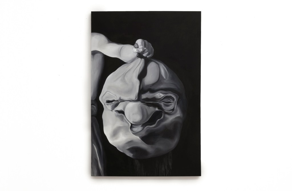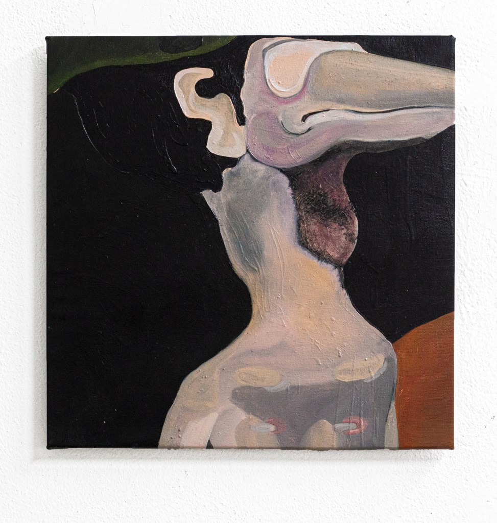 Gettabandi is the latest work-in-progress painting composition. It consists of a series of medium to large format oil paintings on paper. The work is created simultaneously with video and cinematic productions, drawing significant influence from the video format. Each individual painting is conceived as a “frame” of impossible situations, glimpses of upcoming scenarios to be filmed, and notes for planned performative projects.