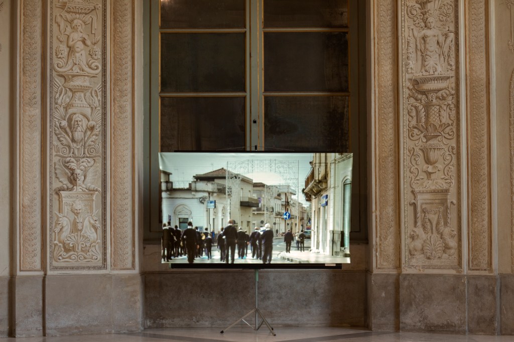 The dense crown of artichoke leaves, which gives its name to the “cosca” (a term also used to refer to a criminal gang), reclaims its title; intimidations involving animal heads, acts that are both cultural consequences, return as formulas of counter-narrative. The mourning ritual resurfaces for land temporarily at rest.