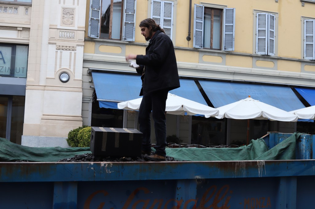 Quiescenza is a performance/video work and urban installation. It is realized in three acts, spanning from the Etna region to Monza, traveling across Italy with a truck.